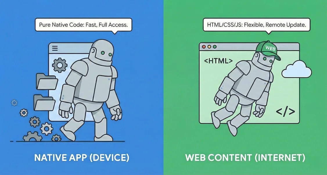 웹 뷰(Web View)는 네이티브 애플리케이션(모바일 앱, 데스크탑 앱 등) 내에서 웹 콘텐츠(HTML, CSS, JavaScript로 만들어진 웹페이지)를 표시할 수 있게 해주는 컴포넌트이다. 쉽게 말해, 앱 안에 미니 브라우저를 내장하여 웹사이트나 웹 서비스를 그대로 보여주는 역할을 한다.