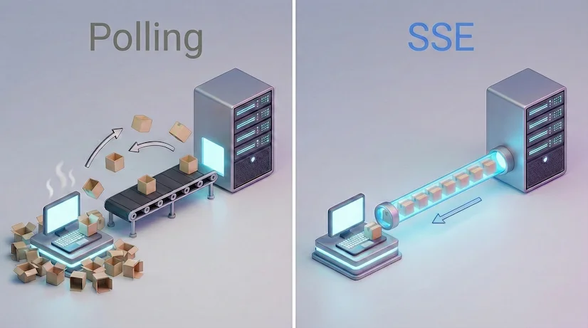 실시간 데이터 전달을 알아보다보면 자연스럽게 폴링과 SSE를 비교하게 된다. 이번 글에서는 처리 진행률을 받아올 때 왜 SSE를 선택했는지에 대해서 작성해보려고 한다.